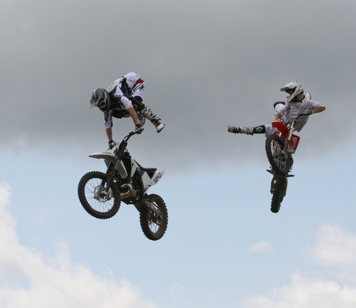 L'accrobatie, en résumé, c'est celui de droite qui doit donner un coup de pied au cul à celui d'gauche