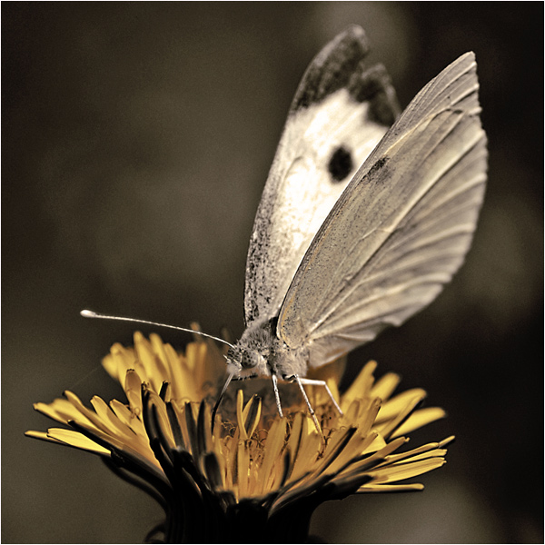 Pas de pb pour la netteté... celle du papillon est en phase avec la fleur... et beau duo servi par une couleur legerement désaturée (volontaire ou non ?) ...Bonne lumière et contraste...