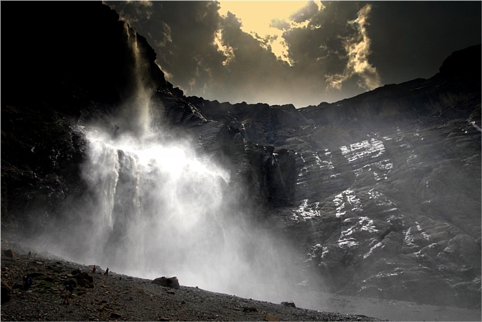 La cascade du cirque de gavarnie (432 mètres) avec des falaises de plus de 1000 m de hauteur (cf taille des personnage)...