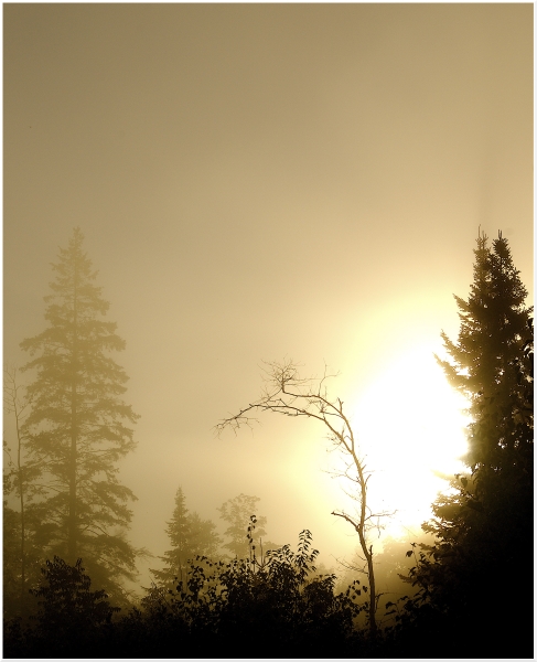 Aucun traitement ! Couleurs naturelles à 6:30 ce matin; lendemain d'une nuit d'orages violents... Brume, soleil et ciel bleu : c'est encore l'été !