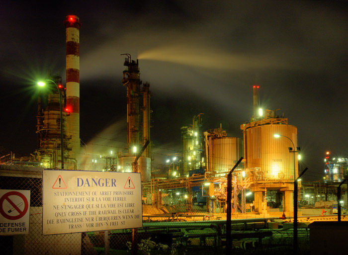 Une belle ambiance nocturne. Je trouve quand même que tous ces tuyaux font un peu chargé. J'aurais aussi, soit exclu complètement, soit cadré en entier, la pancarte "défense de fumer".