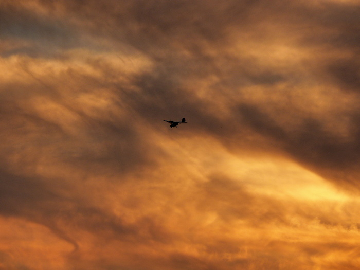 les couleurs du ciel et de ces nuages sont superbes, et du coup le petit avion se fait absorbé... peut être trop centré pour qu'il ressorte un peu et un cadre pourrait aussi faire ressortir du fond de cp
