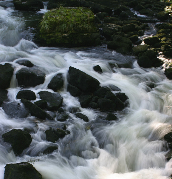 Manque de "lenteur", de lumière et un poil de contraste... la courbe proposée par la rivière est sympa mais il aurait peut-être été interessant d'attirer l'oeil sur le rocher couvert de verdure en le positionnant mieux... y'a une petite branchouille sur la droite à nettoyer ...