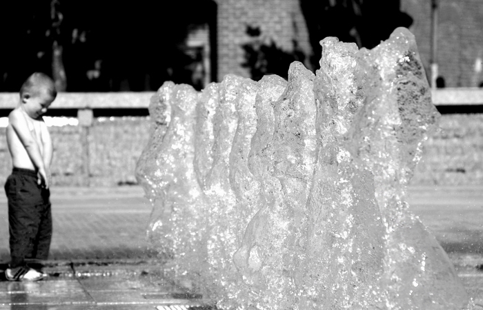 Le jeux est sympa mais le personnage (acteur principal) n'est pas trop mis en avant... du mal à savoir si il est le sujet ou de passage car la pdc est insuffisante ou mal positionnée... L'eau figée par la vitesse est bien rendu et donne un effet glace, paradoxe avec le gamin torse-nu ...le fond noir attire l'oeil tel le lampadaire moyen le papillon ...peut-être en couleur ?