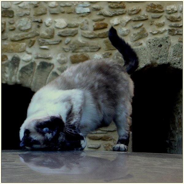 le reflet est bien fait .... dommage qu'il soit un peu trop ecrasé pour le cadrage .. bien vu , bien pris !