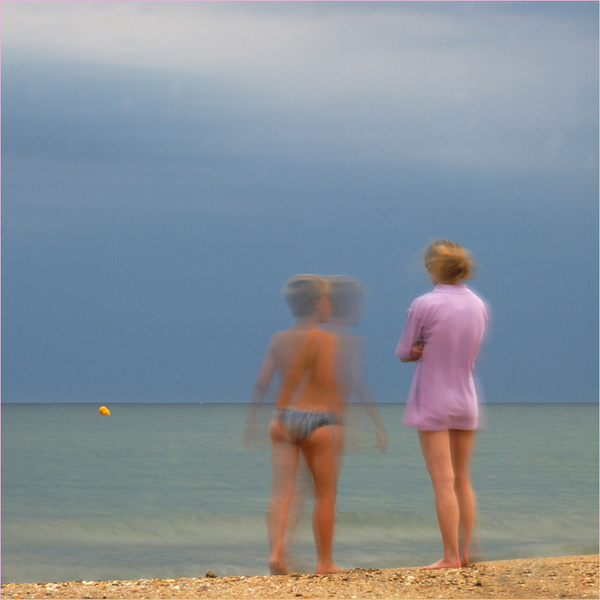 Cette image me plait par son caractère nostalgique (on croirait presque entendre "le vent l'emportera" de noir dez derrière...) mais je trouve que le traitement "au carré" laisse trop d'espace au dessus des personnages et que la bouée jaune "pétant" et trop nette et attire l'oeuil