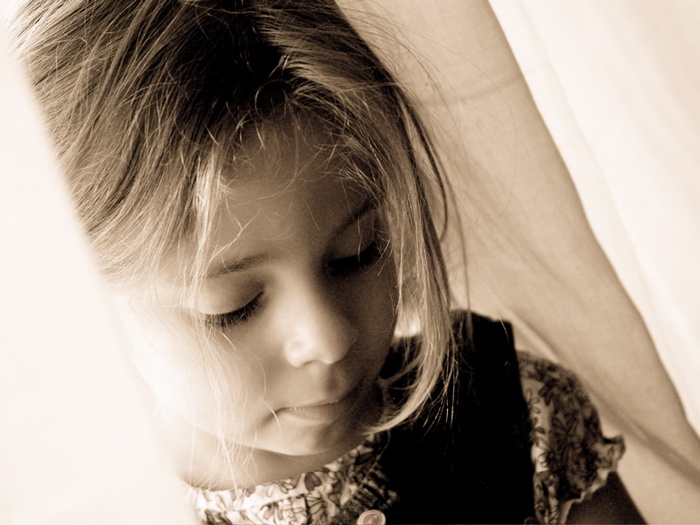 La compo forme une belle diagonale avec la position/pose de l'enfant enforcée par le voilage....