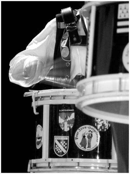 Le cadrage est original, mais les noirs trop bouchés. On ne distingue pas les bords du tambour.