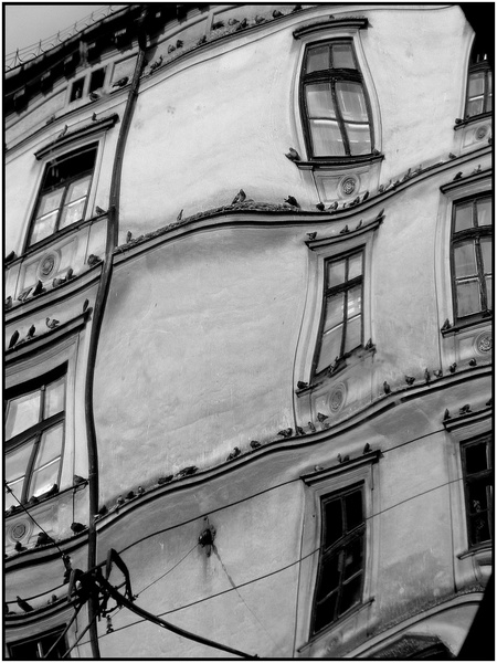 Pourquoi enlever les fils, photoman ? il y a des tramways partout dans les pays de l'Est...d'ailleurs, en les laissant, cela laisse supposer que le bâtiment fait dans les 3 étages (les fils passant devant les fenêtres du 1er étage aussi), c'est aussi une façon de décrypter l'image. Sans me comparer, Depardon qui photographie les villes du monde entier intègre souvent les fils electriques, de téléphone, etc..dans ses photos...alors moi aussi je les aime bien tous ces petits fils, c'est notre époque après tout...