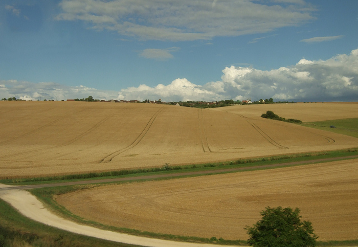 Même si cela reste ,somme toute, assez classique, les couleurs des champs sont trés belles et créeent une belle dominante au niveau couleur. les courbes des blés aussi sont interessantes. par contre le choix du cadrage est peut pêtre à approfondir: laisser juste un tiers de ciel ou alors un tiers de terre..... à voir...