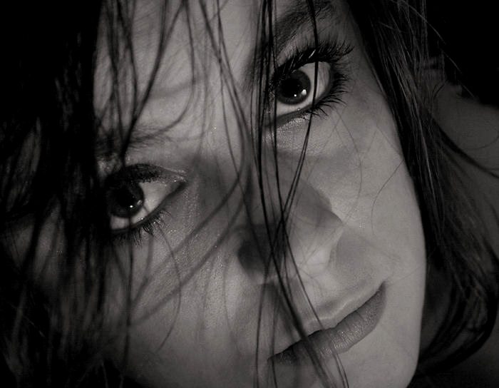 Beau regard, avec une speudo barrière de cheveux suffisamment disparâtre pour laisser percer ces beaux yeux !