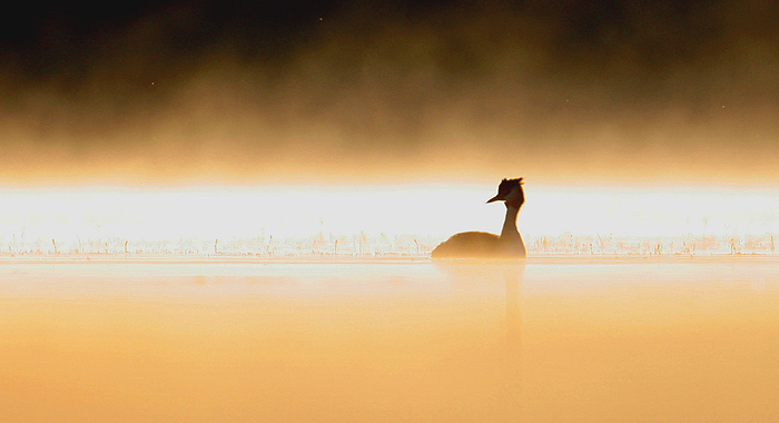 Grèbe huppé à l'aube
