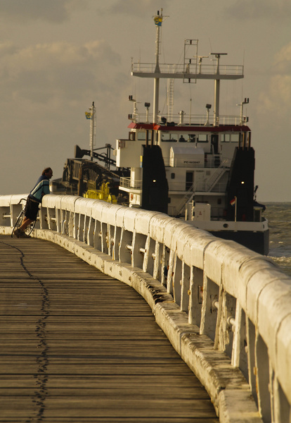 Pas de découragements... le ponton au 1er plan est un peu trop présent (il faudrait reprendre 2/3 de ciel (bateau) et 1/3 de mer, ) ..en te décalant plus sur la droite, le bateau aurait été plus visible et il y aurait eu un espace entre le personnage et ce bateau (ils sont collés l'un à l'autre) et l'espace derrière le personnage (et devant le bateau à gauche) n'aurait pas été bouché...