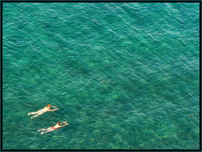 Juste envie de faire écho à ma photo précédente...(même si ce n'est pas pris au même endroit...ici, c'est l'Adriatique alors que l'autre c'est dans la rivière Soca, mais les deux en Slovénie)...