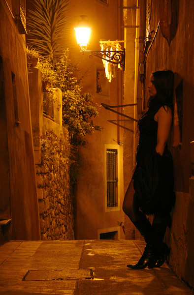 belle ambiance nocturne ,cette rue me fait pensée au film "le grand bleu" il y avait le meme style de rue.