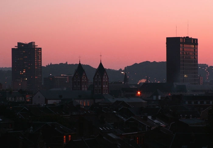 Beaux tons pastels pour le ciel, le cadrage est sympa avec ces clochers traditionnels au milieu des tours modernes, qui ferment l'image.