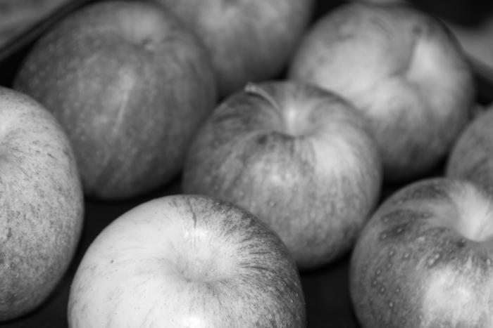 Bonne idée, mais la zone de netteté passe assez mal car sur une pomme trop clair (= blancs cramés...)