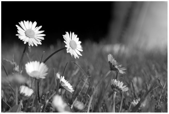 par contre j'aime beaucoup la façon dont se détachent les deux pâquerettes bien nettes sur le fond noir à gauche.