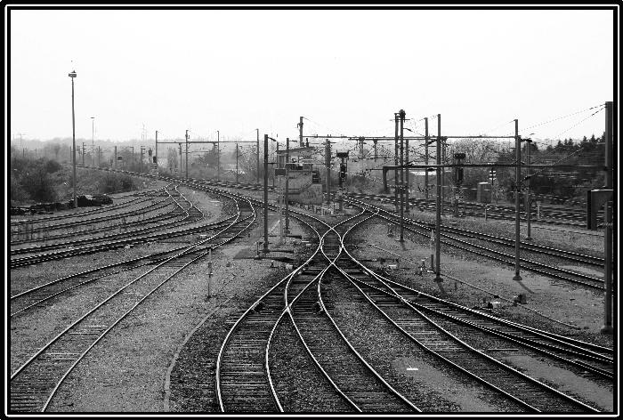 Pour le traitement un peu dur, c'est à la fois voulu et necessaire. il y avait un voile d'humidité dans l'air difficile à enlever. sinon, l'aspect des rails est dû à la compression. Enfin, pour le ciel, je m'etais demandé aussi s'il netais pas cramé mais selon l'histogramme ça va. le ciel etait particulièrement bas ce jour là.