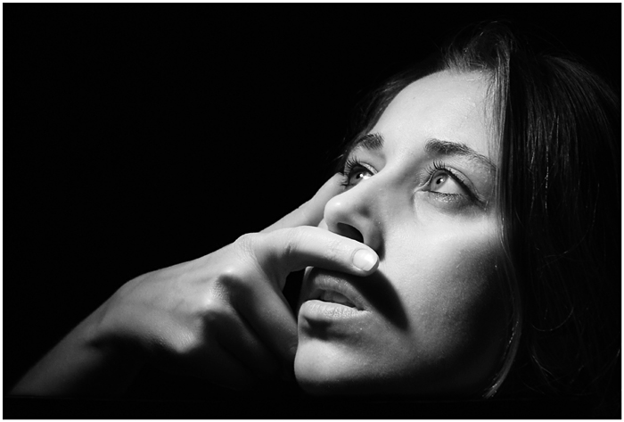 j'aime beaucoup la composition de ton image en diagonales: celle formée par la ligne main/visage ainsi que celle donnée par la direction du regard.