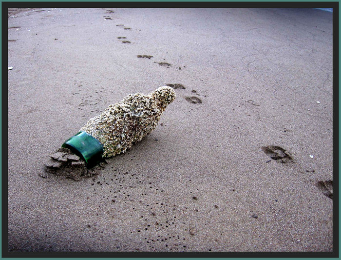 les bouteilles a la mer me font toujours rever, un peu plus de nétteté pour moi, le cadrage et comme il faut, un coup de nettoyage sur le petit bout de mer en haut a droite et hop