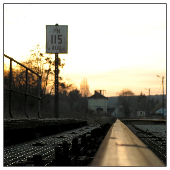 2 sens de lecture pour moi, évocation du voyage ... mais surtout la vision d'une personne collée au rail pour en finir, partir .