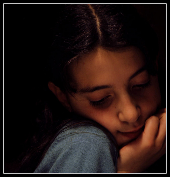 un peu sombre pour moi..il manque une accroche..peut être avec le regard vers nous...la position est sympa ..mais de voir la raie dans les cheveux ça me gène....