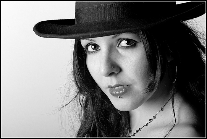 la lumiere rasante fait ressortir tous les defauts de la peau.Les cheveux font fouillis. (et ca , je m'y connais en coiffure) le maquillage peau n'est pas a la hauteur.(faudrait voir en couleur pour donner plus de precision).Et enfin ca manque de punch: pourrait jouer avec le chapeau ou quelque chose comme ca