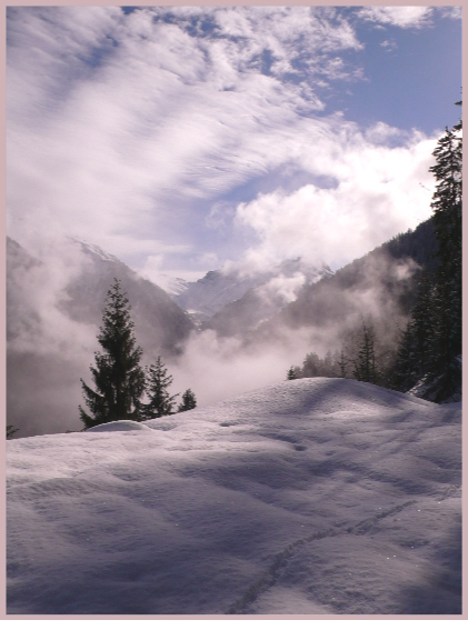 quelques petits problèmes de cadrage(bout de sapin ou épicéa à gauche, la neige qui nous emmène vers la droite alors que le fond de vallée est au centre de la photo), mais la compo est sympa et assez dynamique;