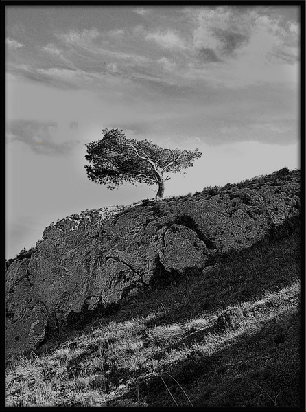 moi j'aime bien ces arbres tout seuls qui se battent contre la nature aride..j'aime bien le traitement aussi