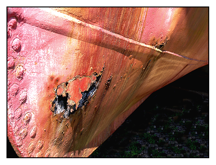soit le cadrage aurait du se préoccuper uniquement de la texture, de la rouille et ainsi devenir une photo plus "graphique" en éliminant le sol