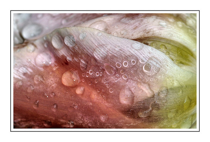 Presque une image abstraite, les teintes pastel sont belles et les gouttes d'eau sont d'un bel effet.