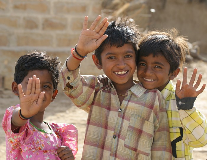 Belle photo ! Dommage que l'enfant de gauche cache involontairement son visage mais j'aime l'expression des visages amusés. Ca me donne l'idée qu'un rien les amuse dans leur univers peut-être morose, et il est si bon d'amuser les enfants ! Mais je trouve la photo un peu terne. Voici une humble proposition.