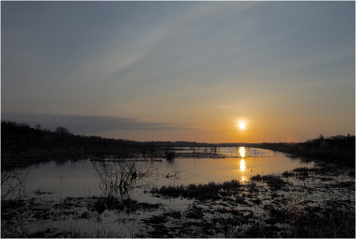 Premières lueurs au-dessus du marais