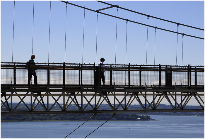 mmmmhhhhh....je parie sur les chutes de montmorency...C'est vrai que vu comme ça on à l'impression d'être tres tres haut bien vu!j'aime un peu moins le paysage derriere qui rend difficile la lecture de la photo...il aurait été préférable pour moi que le pont soit juste au dessus...En tous cas ça donne le vertige!!! amclmt