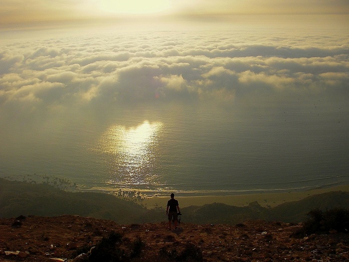 C REUSSI, c'est une photo prise a Imsouan au Maroc, une vue magnifique qui laisse muet, le soleil, en dessous les nuages et la mer, un moment extraordinaire, on peux apercevoir sur la droite, les barques de pecheurs ( car ce ne sont pas des pistouilles)!!!