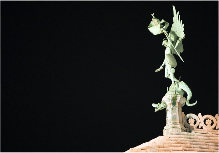 le rapport est que c'est st michel perché sur montmartre et que tel qu'il est pris on a l'impression qu'il est sur un plongeoir pret à sauter...(enfin c'est comme çà que je le voit)