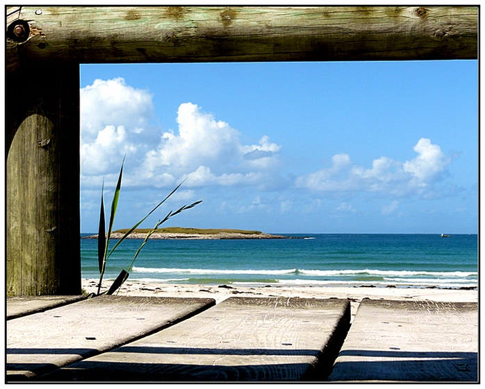 Un cadre dans le cadre. j'aime bien le minimalisme, les ombres, le ciel. Par contre la poutre coupée en haut c'est pas top (peut etre pas droit ?)