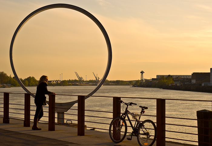 Bien joli, ce jeux de roues dans la lumière du soir : juste un petit regret pour la roue coupée du vélo