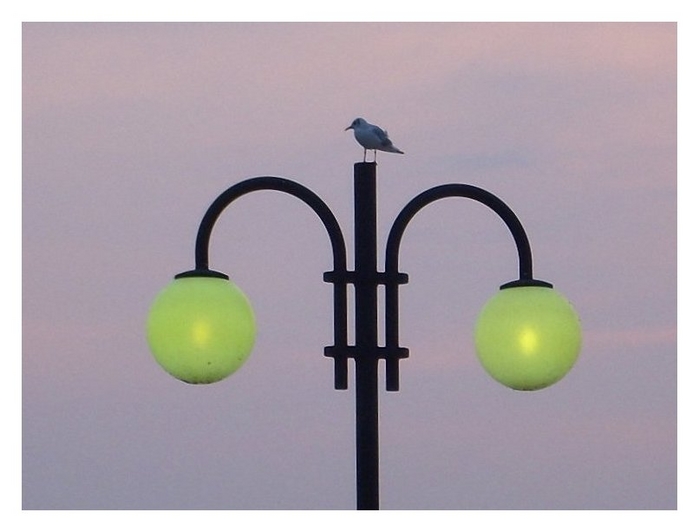 Ce qui me perturbe est l'impression que la pdv ne s'est pas faite pile en face du lampadaire, principalement à cause des barres horizontales légèrement penchantes. Du coup, moi qui cherche une belle symétrie, paf dedans. Ceci dit, j'aime bien l'idée, c'est très bien vu, et à part ce petit détail et l'oiseau un peu sombre, j'aime bien !