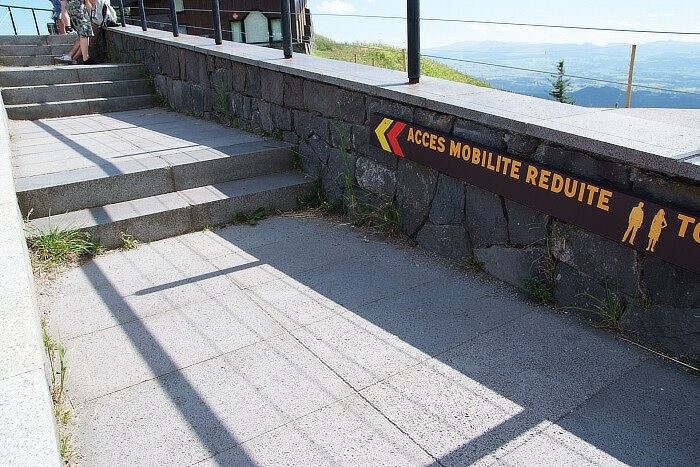 peut-être se baisser plus, pour mieux se mettre à la place d'une personne en fauteuil, et cadrer de manière à ne pas avoir le bout de mur à gauche et les morceaux de gens en haut