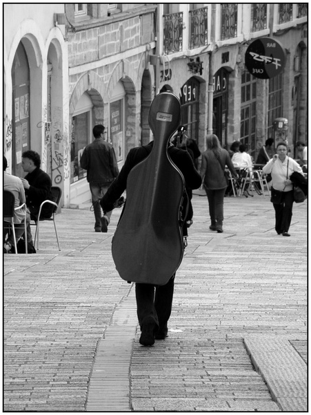 Celle-ci me plait particulièrement bien, principalement du au fait que la personne n'a de tête que le bout de son étui ! Pour peu que l'on change le décor et la couleur, ça me fait penser à du Magritte.