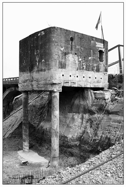 Bien Michaël, vu du dessous impresionnant cette masse de béton, concernant le ciel il était plutôt gris, en fait depuis le mois de novembre je suis l'évolution des travaux du nouveau pont, pour la petite histoire ce blockhaus a été déplacé de 1 metre 30, patrimoine historique, ce cela t'intéresse va voir sur mon blog "" Ligne Maginot et site médiéval""( pont de Vroenhoven)