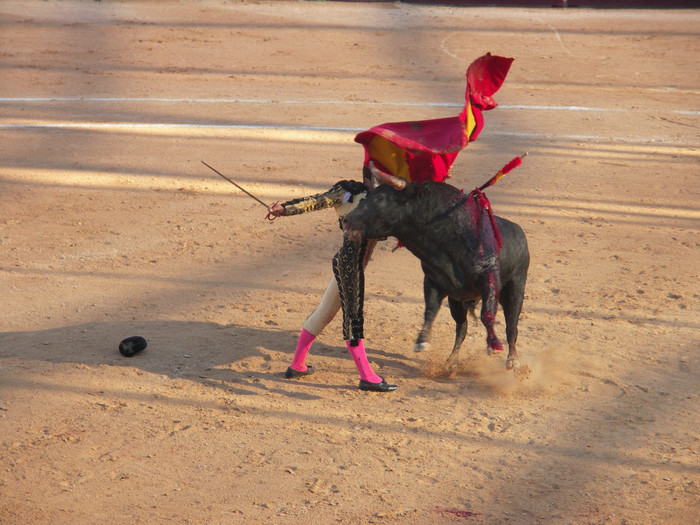 Côté technique, je pense que certaines choses sont à améliorer. Le cadrage ne nous laisse pas voir le toréador, et l'ombre est coupée. Le taureau est flou, probablement du à sa vitesse, or, d'après le titre, c'est lui le sujet.