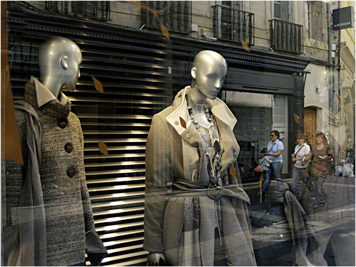 Mais dis donc, tu fais du lèche-vitrine en ce moment!!! Super reflet, très bien vu la tête du mannequin tournée vers les passants. Bravo!
