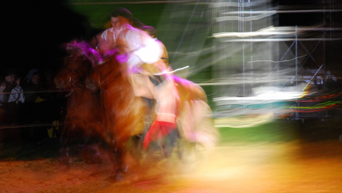 Tu aurais également pu essayer la synchro lente, en donnant un coup de flash en premier rideau, tu aurais figé le cavalier et laissé une trainée derrière, ça donne du mouvement.