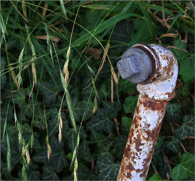 Une tige en métal perdue au milieu de la verdure naturelle, telle une question ironique sortie des entrailles de la terre. Cette oeuvre oppose l'insouciance juvénile des petites tiges vertes à la sagesse du vieux tuyau rouillé. En arrière plan résonne la révolution prolétaire qui dénonce l'injustice économique et sociale - qui est l'ouvrier inconnu et mal payé qui a réalisé cette oeuvre splendide? Si l'on regarde bien, on peut également y découvrir le questionnement écologique qui caractérise notre époque et la possibilité d'une solution extra planétaire à ce dilemme (D'après le livret de l’exposition qui n'existe pas).