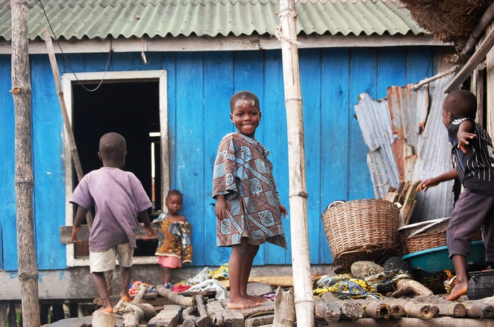 Le sourire de la petite fille qui vit dans la misère est très touchant. Je regrette que l'enfant à droite soit coupé. Belle photo.