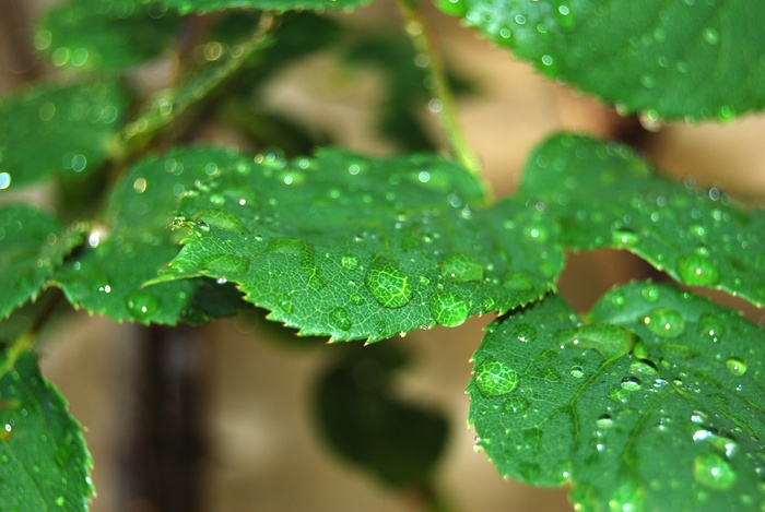 Toujours très tentant ces gouttes d'eau sur les feuilles. Je trouve cette photo un peu chargée, en particulier sur l'arrière-plan. Je pense que la netteté aurait dû être faite sur la feuille plein champ et avec une PDC plus importante.