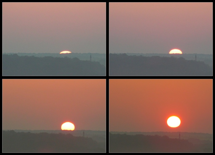 Bonne idée ce lever... Je regrette juste le peu d'écart entre les images 1 et 2 pour la position de l'astre, cela freine la progression au niveau de la chaleur des images... J'aurais bien vu la seconde image quelques poignées de secondes plus tard... Je chipotte mais bon, on est là pour ça hein